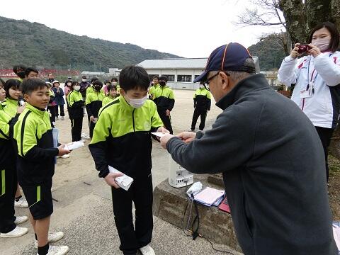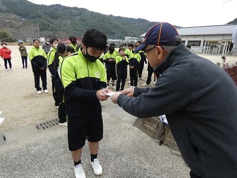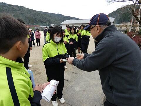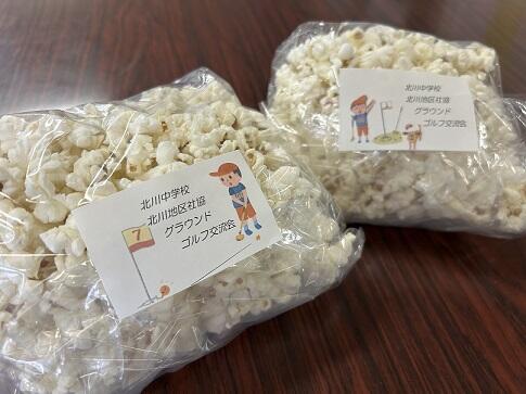 グラウンドゴルフ愛好家の皆さんより全校生徒にポップコーンのプレゼントがありました。ありがとうございます