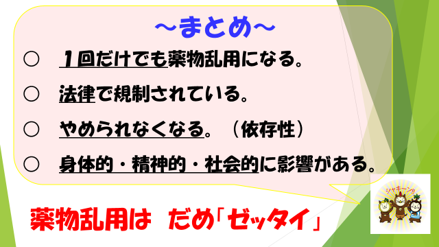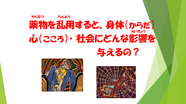 薬物について、生徒と一緒に学ぶことができたことと思います。また、ご家庭でも頂いたパンフレットを見ながら、薬物乱用について・薬物依存についてお話しいただければと思います。