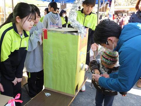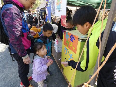 ガチャガチャ以外にも「パチンコ」ゲームの運営にも協力し、ゲームに参加する子どもたちを盛り上げ、楽しく応援する姿が見られました。