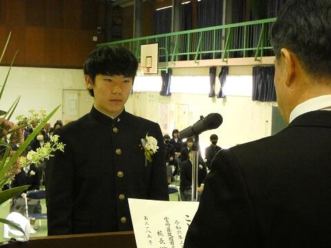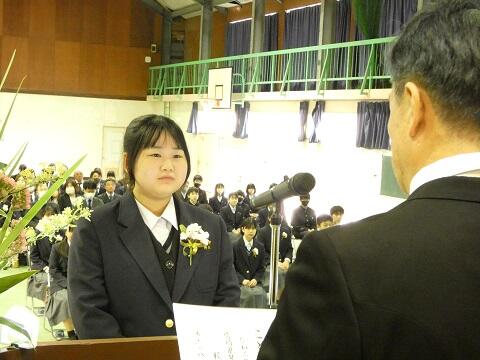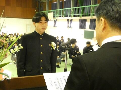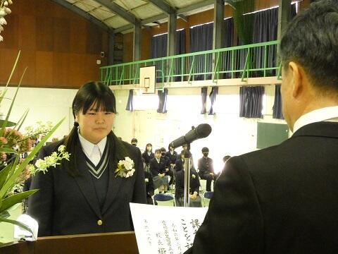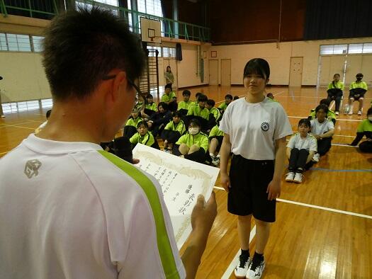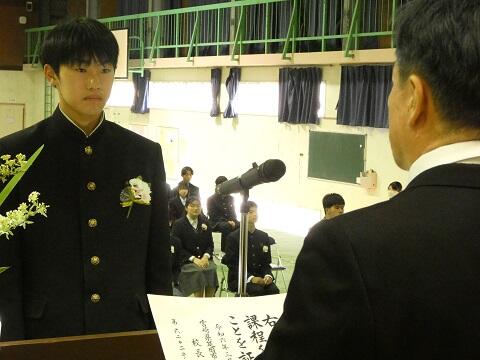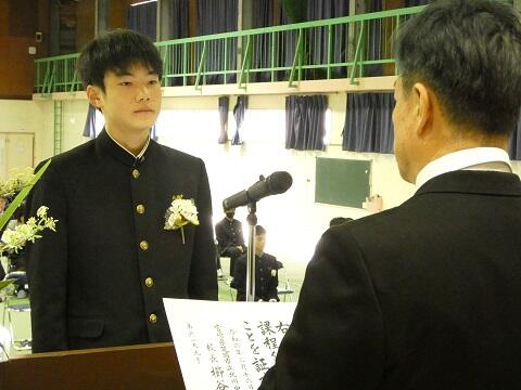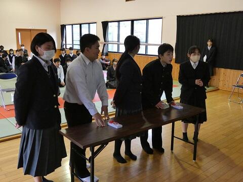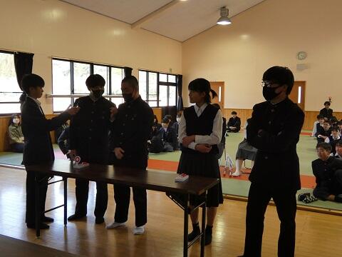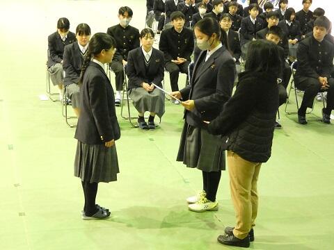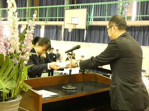 予行練習の最後に、各種表彰と3年生の修了証授与を行いました。