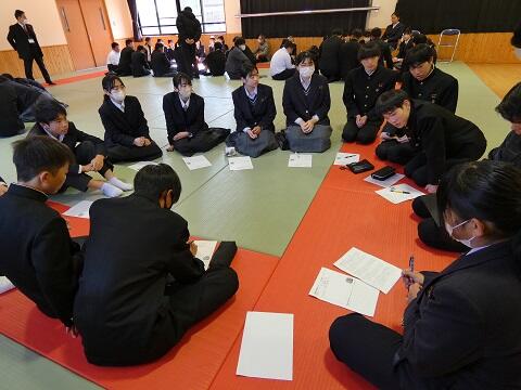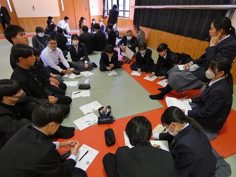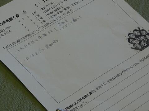 今回の「地域の人の声を聴く会」では、1年間の実践報告と4つ議題ごとに斑で分かれて、話し合い活動を行いました。
