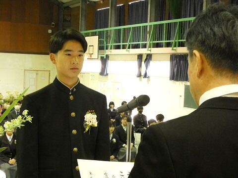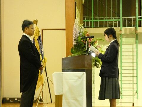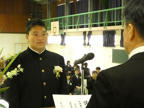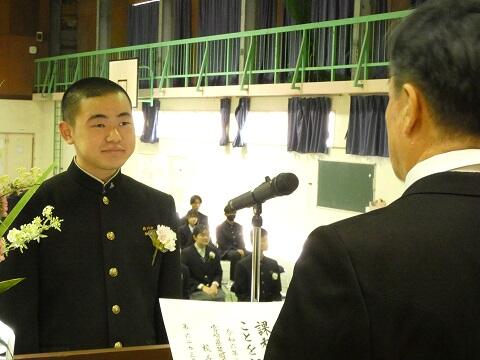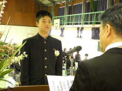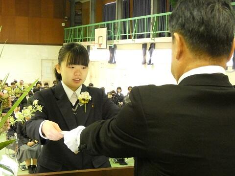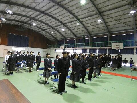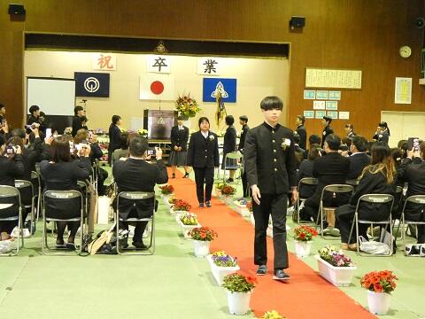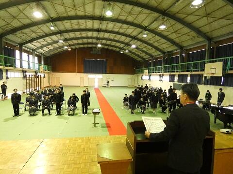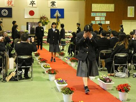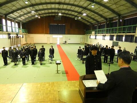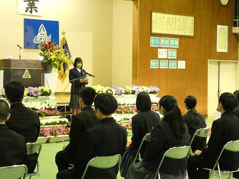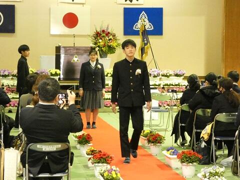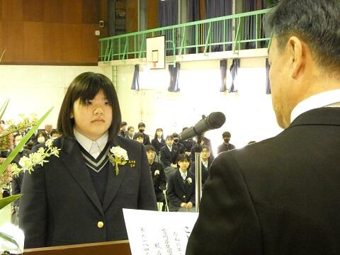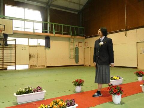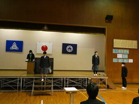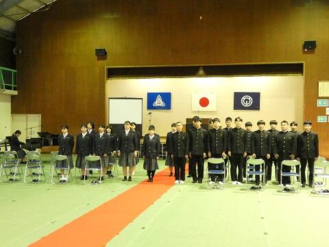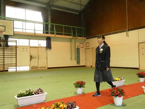 3年前にぶかぶかな制服を着て入学してきた3年生が、今日は素敵な制服姿で入場してきました。少し俯いて入場してきた入学式に比べ、全員が胸を張って堂々と入場する姿にとても成長を感じられました。