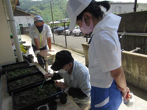 3年B組の作業の時間に、瑞姫さんと一緒に花作りの体験をさせていただきました。とても細かい作業で、根や葉を傷つけないようにする作業にとても集中力が試されました。