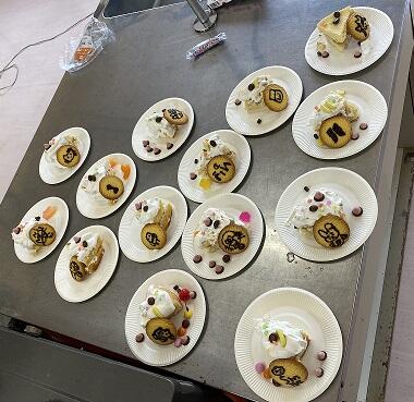生クリームは、電動の泡立て器が無かったため手動で生クリームを作りました。瑞姫さんにパティシエ魂が宿り、顔を真っ赤にしながらおいしい生クリームができました。
