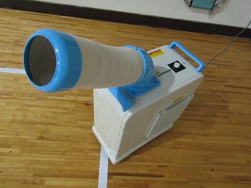本校の体育館は風通しがあまり良くなく、熱中症に注意しながら教育活動を進めています。体育館での熱中症対策の1つとして、スポットクーラーを導入しました。