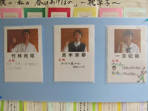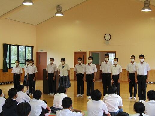 生徒集会では、各委員会の反省と目標、生徒会役員選挙立候補者紹介をしました。生徒会役員選挙立候補に関しては後日紹介します。