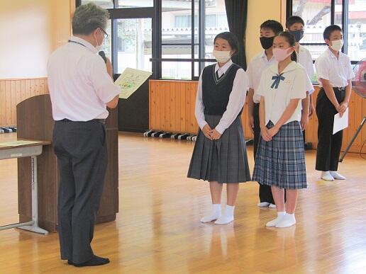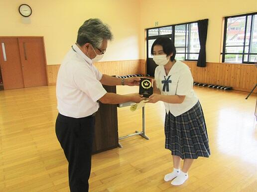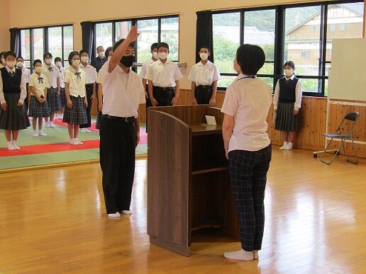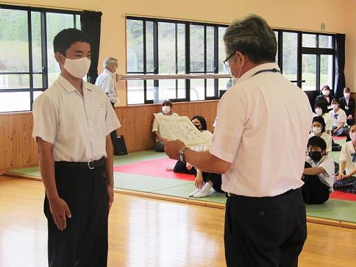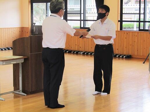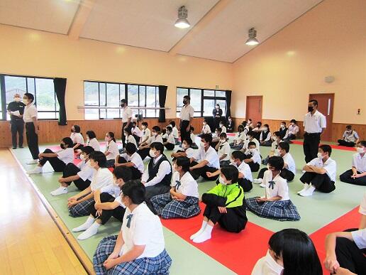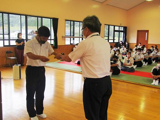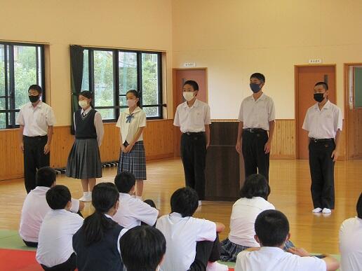 延岡地区中学校秋季体育大会(9月25日~27日)の激励式を、6校時後に武道場で行いました。