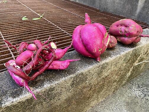 昨日から頭の部分を出していたお芋さん達を大量に収穫することができました!!!掘れば掘るほど土の中から芋がどんどん出てきました。