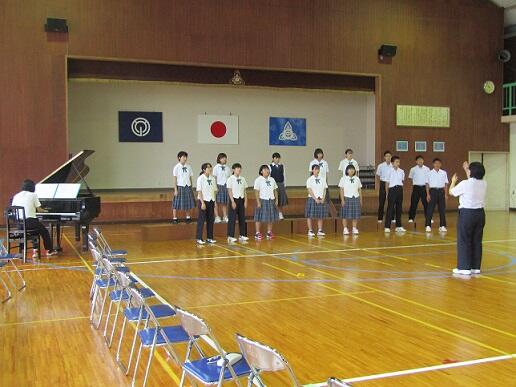 感染症対策として、各学年の合唱は動画を撮影して、当日に映像を流す形となりました。そのため、先週の金曜日に合唱の映像撮影を行いました。