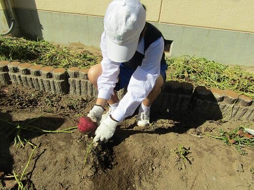 3年B組の畑は、残り大根の収穫があります。次の大根の収穫も楽しみです!!!