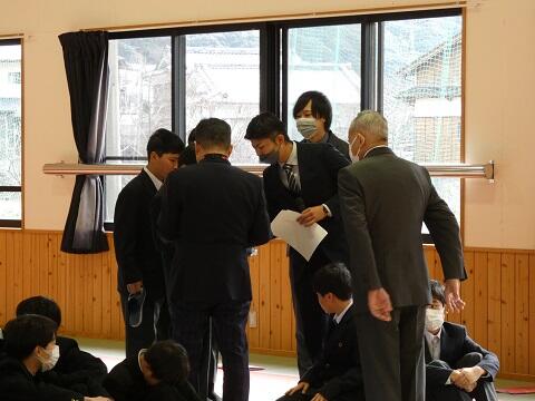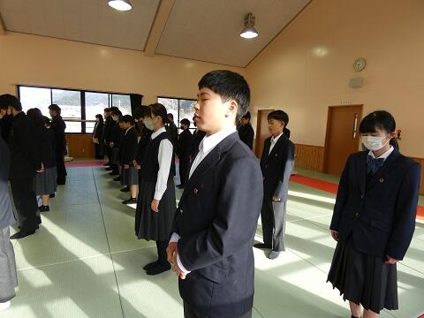 12月に行われた持久走記録会の結果が発表されました。学年男女1位の表彰と毎時間授業に参加した生徒に完走賞が授与されました。