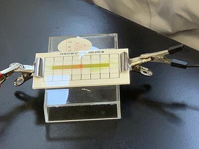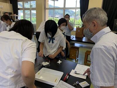 酸性やアルカリ性を示すもとになるものを見いだそうという学習課題について、グループで実験を行い、水素イオンや水酸化物イオンについて考察する授業でした。生徒は楽しく実験に取り組み、真剣に課題解決に取り組んでいました。