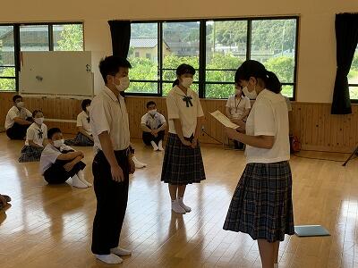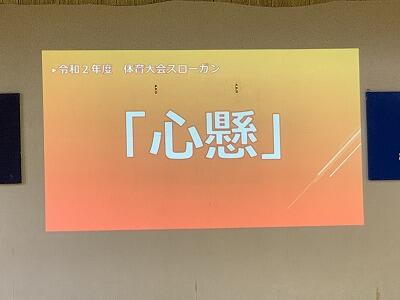 最初はテーマ発表があり、今年度のテーマは「心懸(しんけん)」になりました。心を懸けて一生懸命に頑張る、という意味を込めて決定しました。