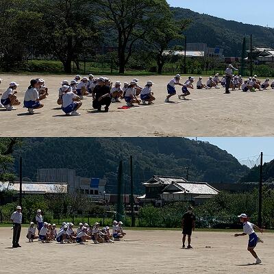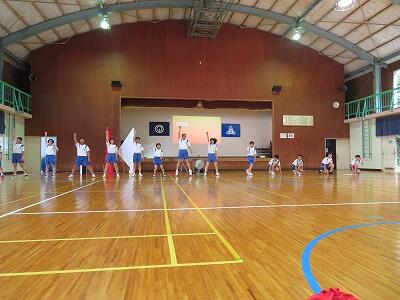 台風が去った後の青空のもと、三密を作らないよう感染防止に努め、給水タイムを設け熱中症対策を行いながら、楽しく練習に励んでいます。