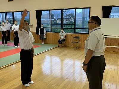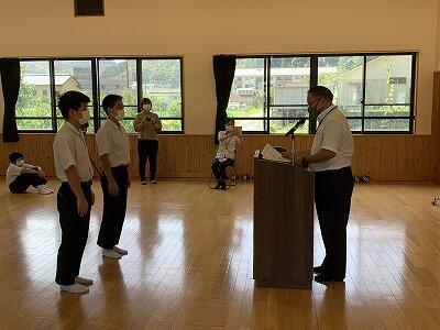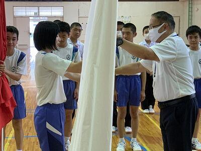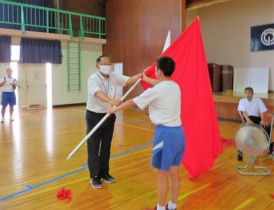 最後に、校長先生から団長に団旗が授与されて結団式は閉式となりました。