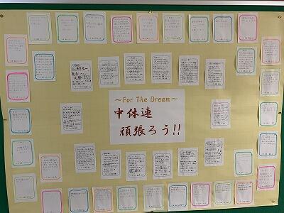 全体としてのでき(平均点)は良かったようでしたが、担任の村中田先生からは、「今はまだスタート地点に立ったに過ぎない。ゴールはまだまだ先にある。できたと感じた人も、そうではない人も気を抜かずに勉強してほしい」との言葉がありました。