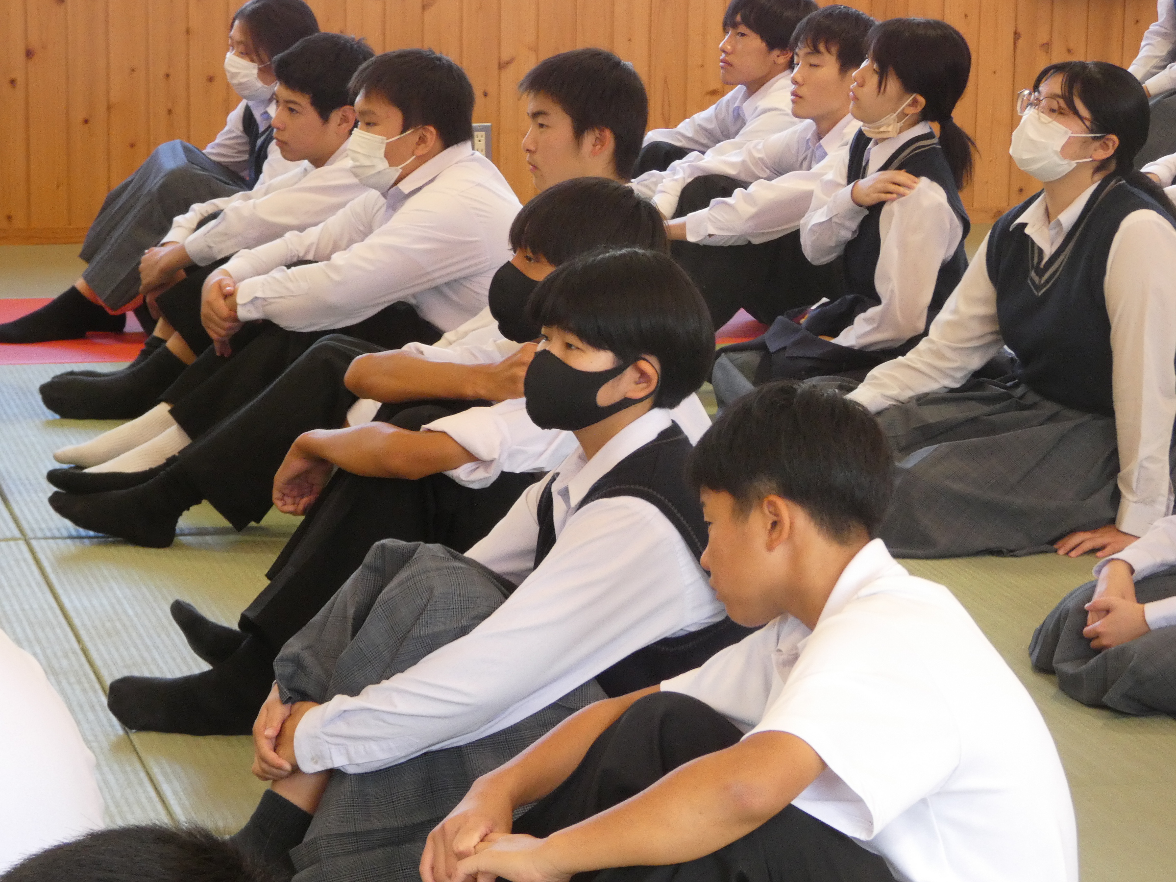 私たちが住む北川にも地域の方々以外の人たちに伝えなくてはいけない魅力が数多くあります。ぜひ、今回の講話を聞いて生徒の中に”「地元北川町」の活性化に努めたい”という思いが芽生えたら嬉しいです。