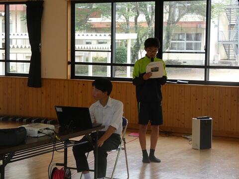 続いて、部活動の説明を各部のキャプテンがしました。各部活の練習風景の動画を見ながら説明しました。