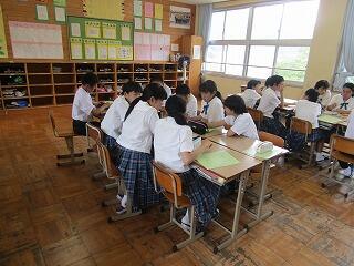 委員会の方たちは朝のボランティア活動や真剣な授業態度に