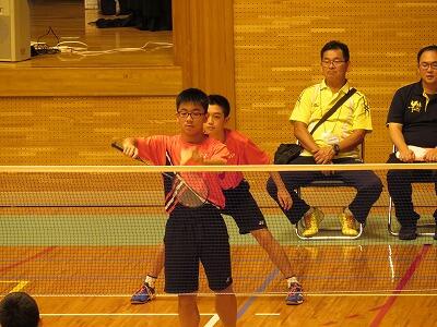 バドミントンの部男子ダブルス優勝森祐太、馬原條君ペア