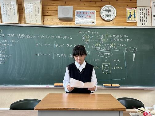 最後に、代表生徒がお礼の言葉を述べました。いつもは、御礼の言葉を言う人を決めていますが、今回は自ら挙手し今回学んだことを伝える事ができました。さすが、3年生ですね。この姿を、後輩がまねできると良いですね!