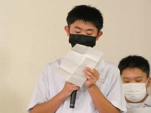 北川中学校からは、少年少女科学技術派遣研修事業、第20回「ジュニア科学者の翼」についての作文を応募した2名の生徒が参加しました。