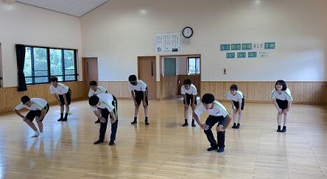 体育大会で使用する『新』北川ストレッチを作成しています。校長先生・体育主任・養護教諭に1回目の審査をしてもらいました。