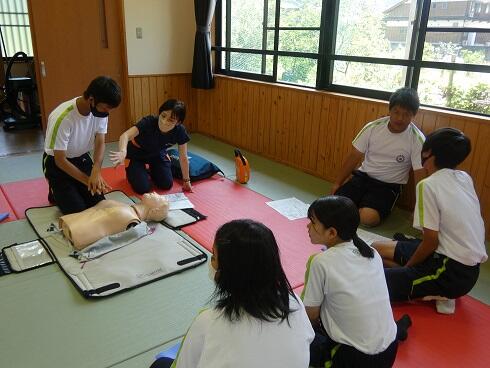 延岡市消防本部警防課の方々3名を講師に招き、心肺蘇生法やAEDの活用方法について学習しました。