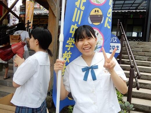 7月29日土曜日、道の駅北川はゆまリニューアルフェスティバルに北川中学校の生徒が参加しました。