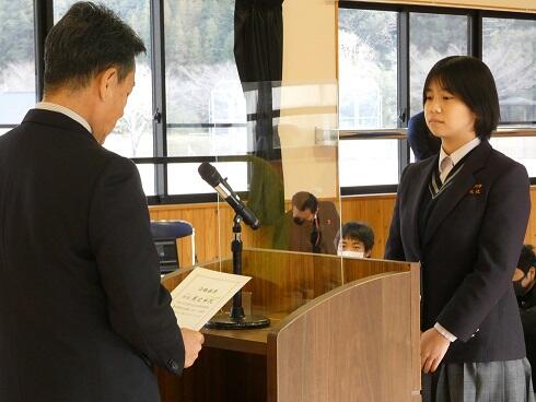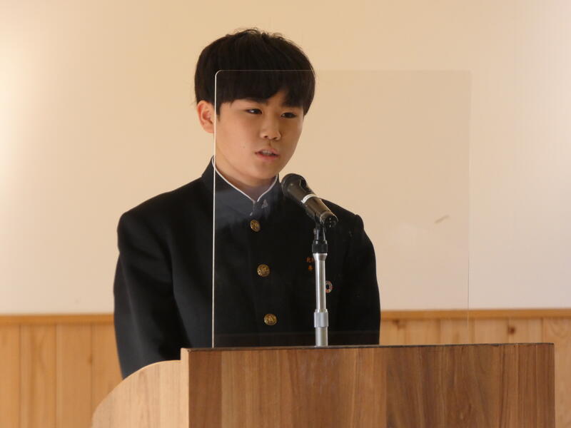 最初に、2・3年生の代表生徒が2学期の反省を述べました。