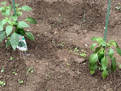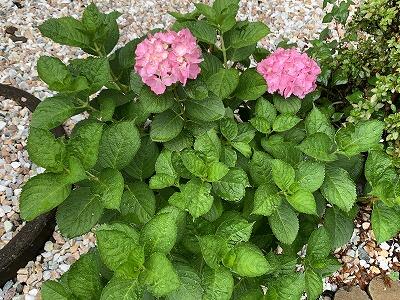 紫陽花の花が咲き、ナスやスイカも花をつけました。