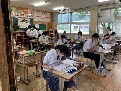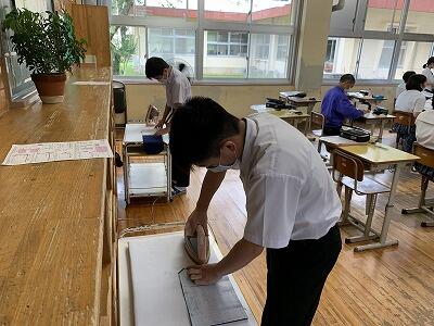 進路決定に向けて大切なテスト。3年生は真剣に取り組んでいました。