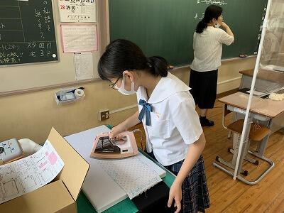 3年生が家庭科の授業でブックカバー作りを行っています。