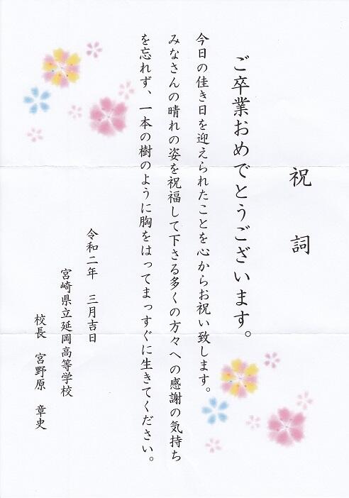 ・校長先生から卒業生へ