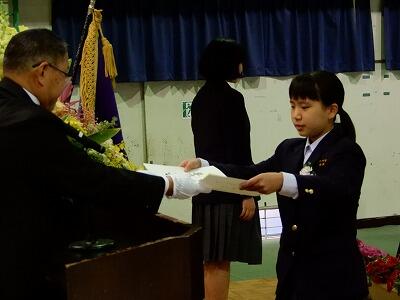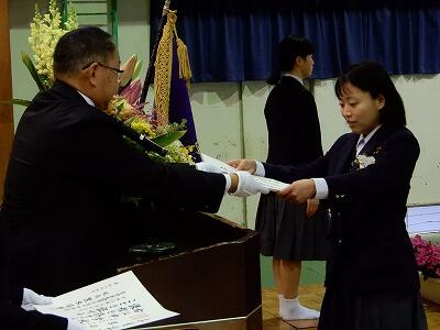 橋本小桜子さんの伴奏による国歌斉唱の後、卒業証書授与が行われました。
