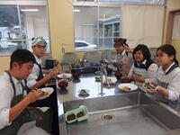 調理実習では、各班に分かれて野菜やお肉を切る人、調味料を計る人・炒める人・混ぜる人とそれぞれの役割を持って調理をしました。