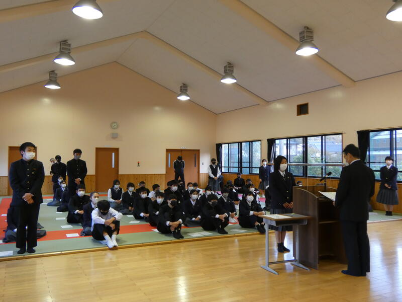新生徒会役員、新全校専門委員長・副委員長が前にでて活動を進めています。後期も前期をさらに越えるよりよい活動が行われるよう、それぞれの役割に責任をもって頑張ってほしいです!!!