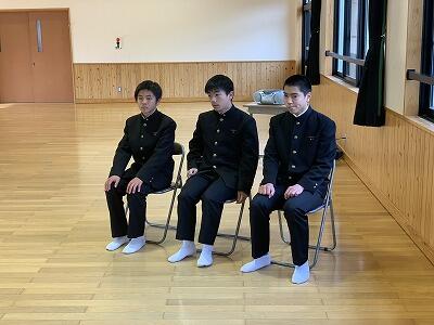 終業式では、3年岩佐春城さん、2年森祐太さん、1年川崎亮駕さんが