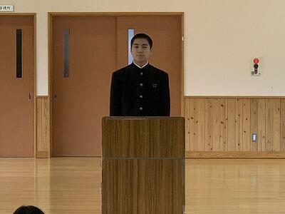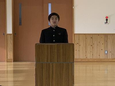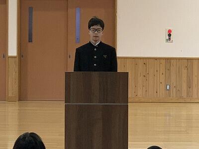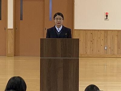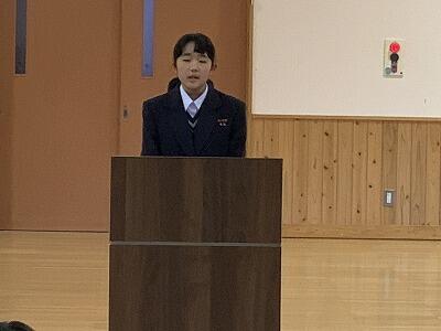 3年生を代表して、甲斐千里さんが、受験に向けて学級の雰囲気をつ