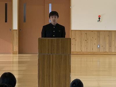 生徒を代表して、生徒会長の白川悠大郎君が、お礼の言葉を述べました。