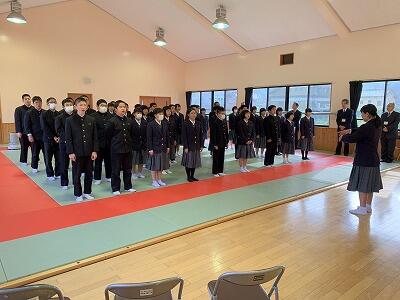 校歌斉唱を行いました。3年生はあと2回ほどしか校歌を歌う機会が