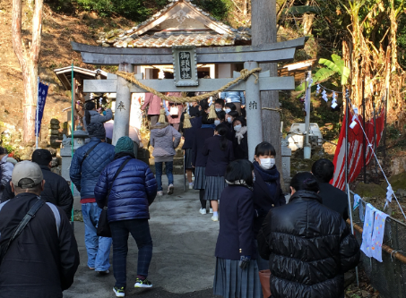 この神社は学問・受験の神様としても有名。3年生20名が参加しました。希望者は参拝もして、餅まきなどの行事に参加させていただきました。