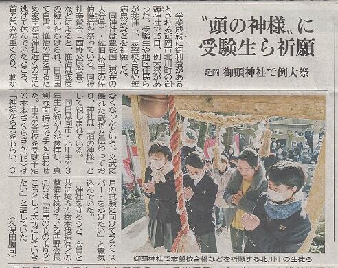3年生御頭神社訪問が夕刊デイリー新聞に記載されました