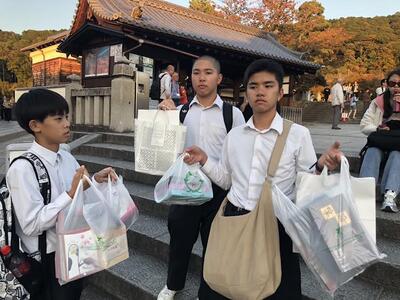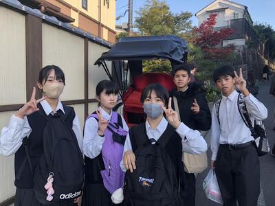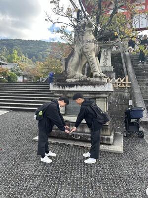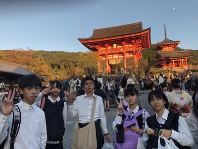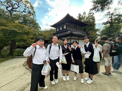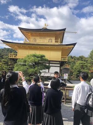 今日は京都班別研修です。3班に分かれて金閣寺・銀閣寺・京都御所・北野天満宮・清水寺をめぐります。