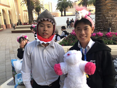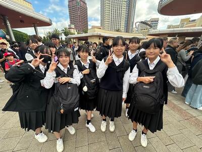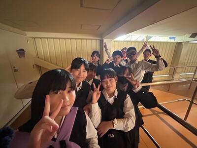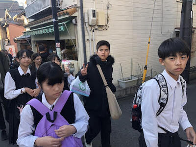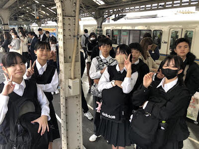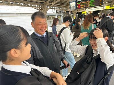朝の通勤ラッシュ時の移動になりましたが、校長先生はじめみんな元気です。