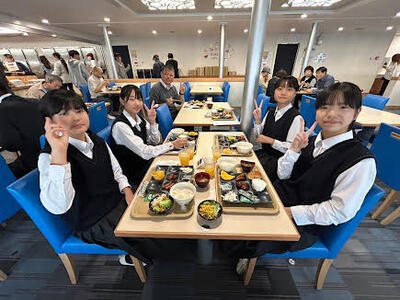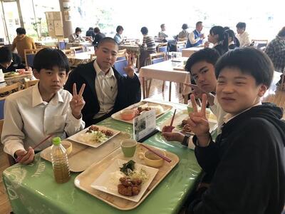 頑張っています。昼食はJICAFeで世界の料理をいただきます。
