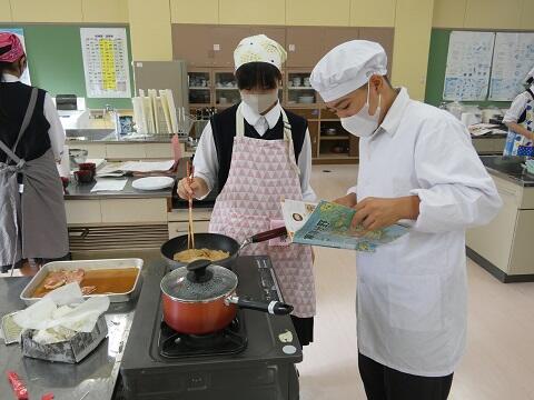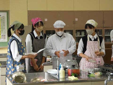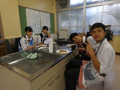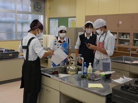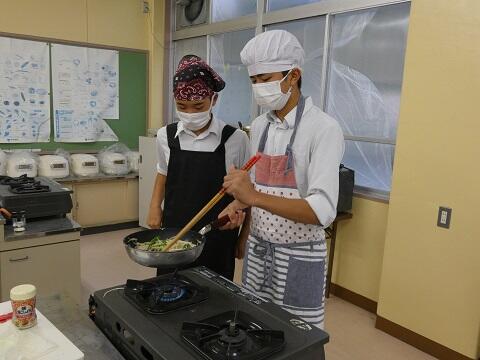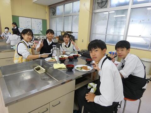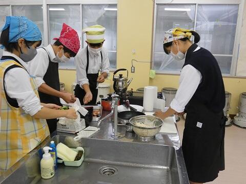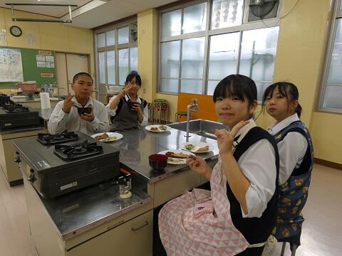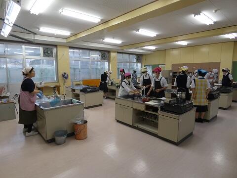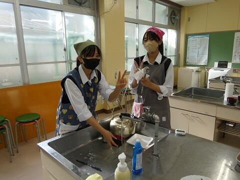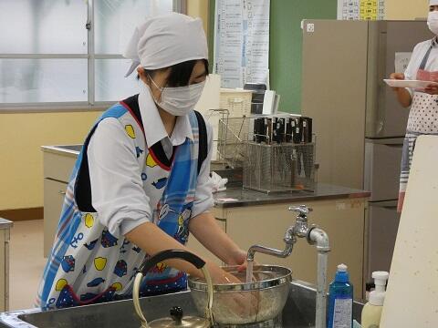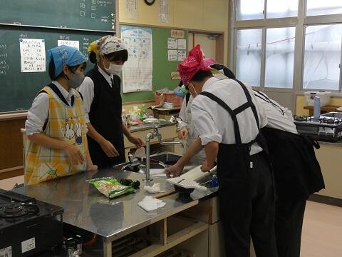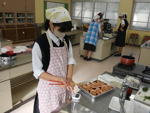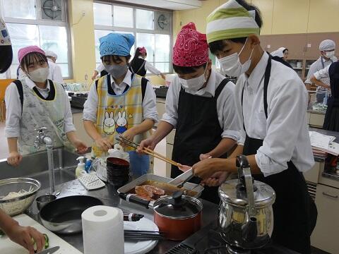 今日は2学年が調理実習を行いました。豚肉の生姜焼きとわかめスープを作るそうです。