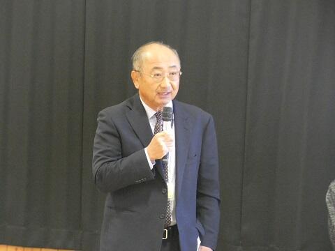 <次に校長先生のお話です。今年は巳年です。ヘビは数ヶ月に一度脱皮をします。この脱皮を終えると体が以前よりも大きくなります。まさにグローウィングですね。今までの古い皮を脱ぎ捨て、脱皮を繰り返すことで大きくたくましく成長します。生徒の皆さんも今まで通り勉強をこなすだけでなく、新しいことにチャレンジし自分の殻を突き破ってほしいと思います。皆さんの成長に期待しています。>