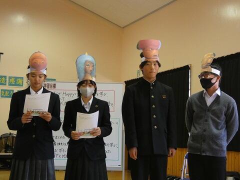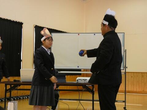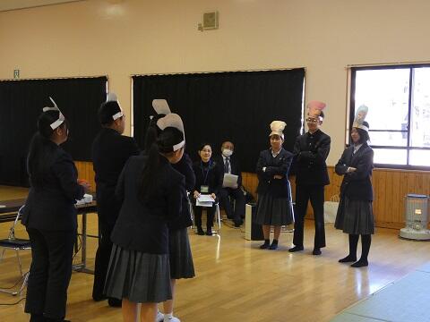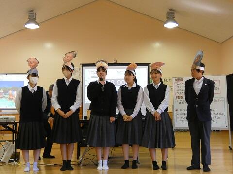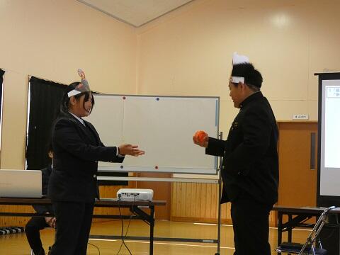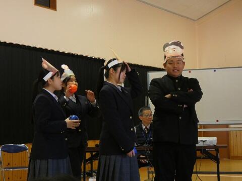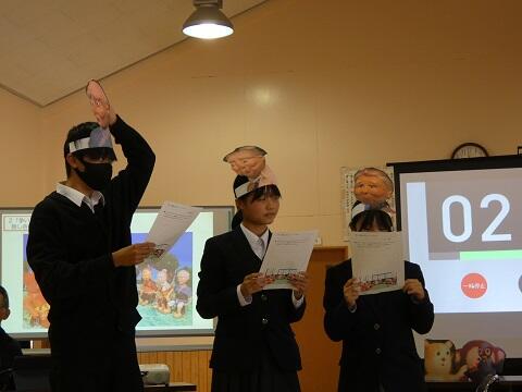 <実際に寸劇を発表します!どの班も鬼の視点を加えており、会話を通して誤解や勘違いを紐解く様子は、各班ともユニークなものでした。>