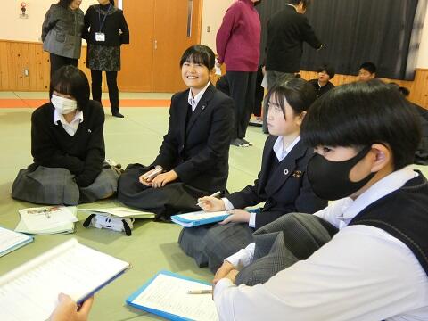 <次に校長先生からのお話がありました。校長先生からの問いかけとして「会話」と「対話」の違いは何か?がありましたね。ただ喋るだけなら会話です。対話には「対」の文字が入っています。対には「対等」の意味が込められています。対話とは、相手の話に耳を傾け、相手の考えや意見も尊重しながら、新しい価値を創り出すことです。どんな人にも優しく誠実なコミュニケーションが、これからの社会で求められています。北川中学校の生徒も、相手を思いやる気持ちを大切にしましょう!>